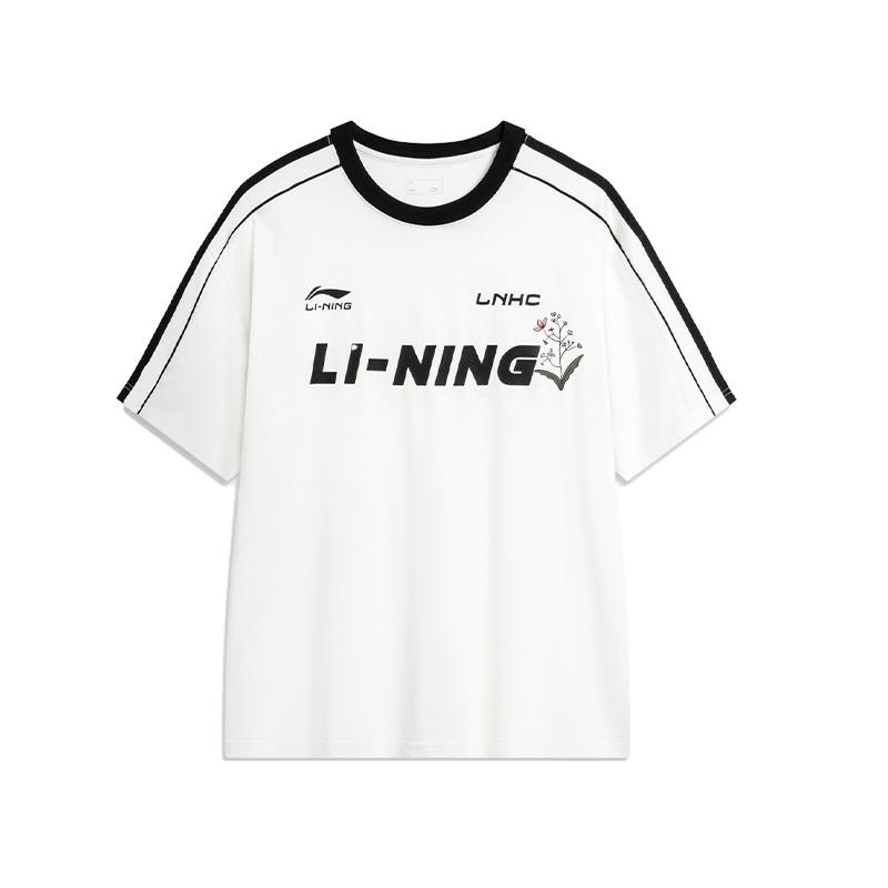 Li Ning Футболка с принтом полоски с надписью Свободная Повседневная Круглый вырез Короткий рукав Унисекс Топы Белый AHSU657-1(КОМАНДА702-3.4.20)