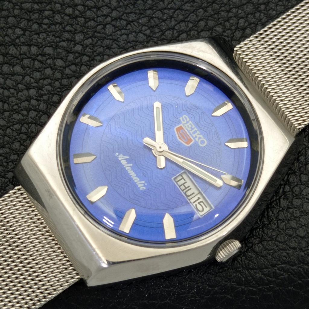 SEIKO 5 AUTOMATIC JAPAN 6309A MENS VINTAGE BLUE COLOR DIAL WATCH a701287-5