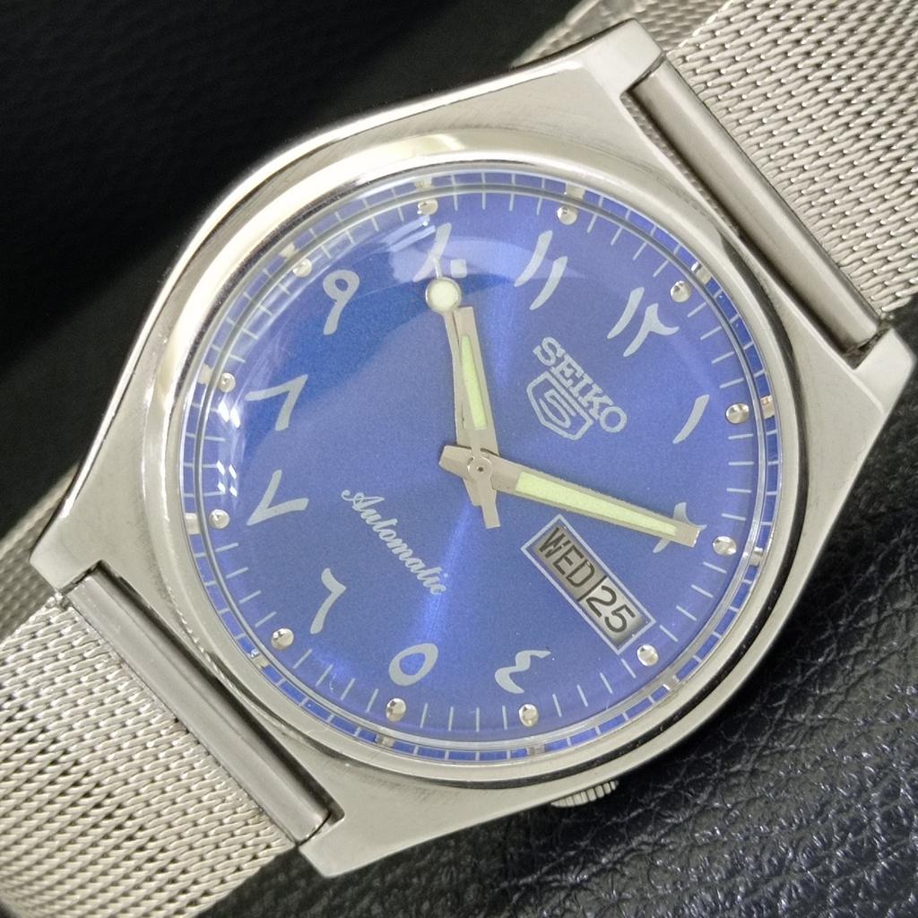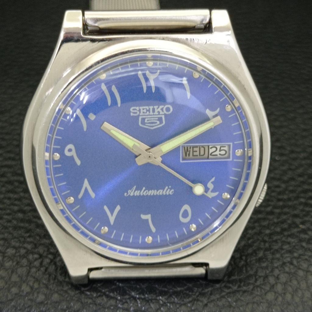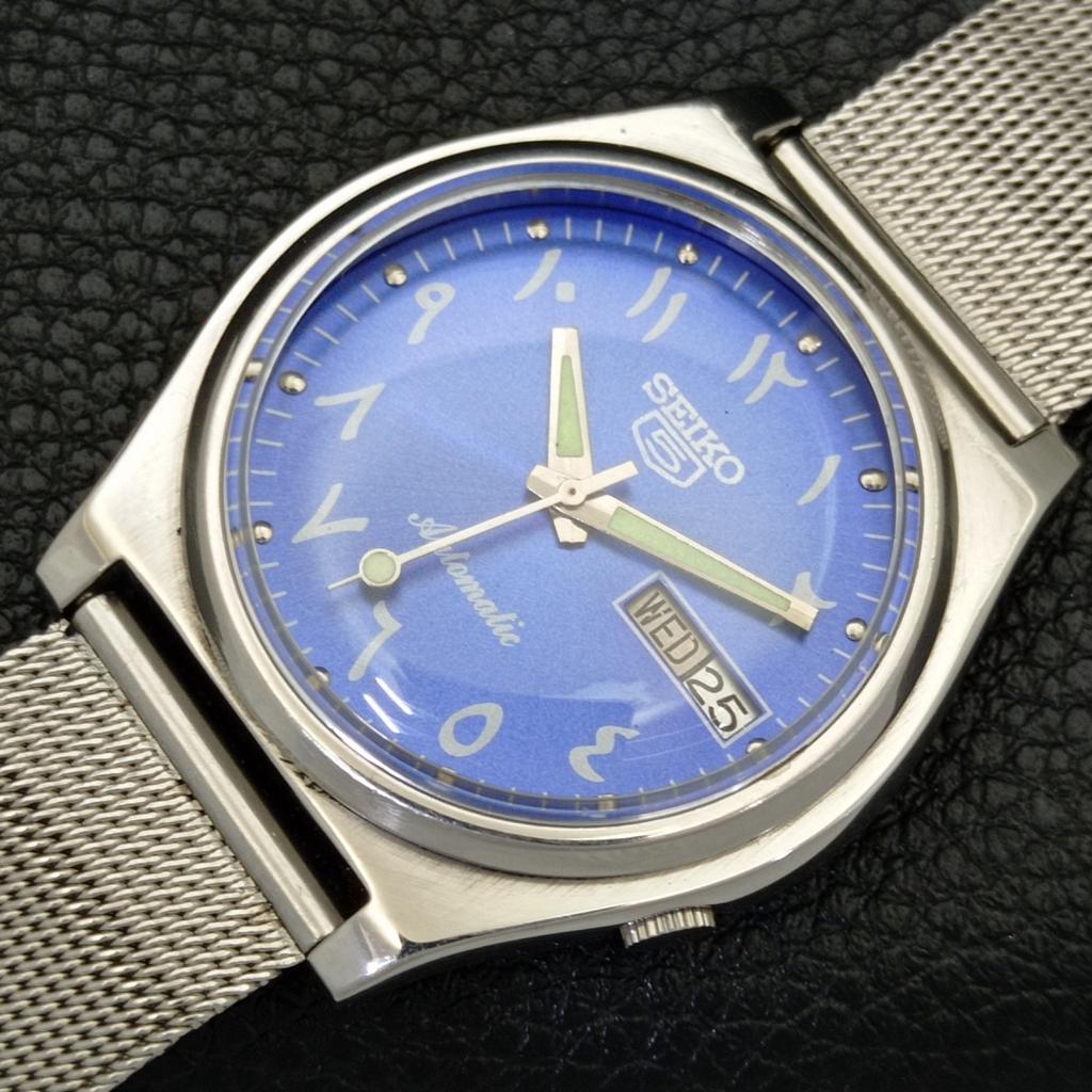 SEIKO 5 AUTOMATIC JAPAN MENS 7019A VINTAGE ARABIC BLUE DIAL WATCH a701210-5