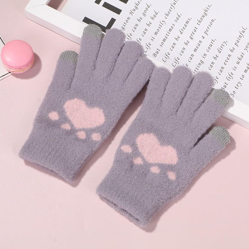 Плюшевые перчатки без пальцев для студентов из-за границы с милым дизайном кошачьих лапок