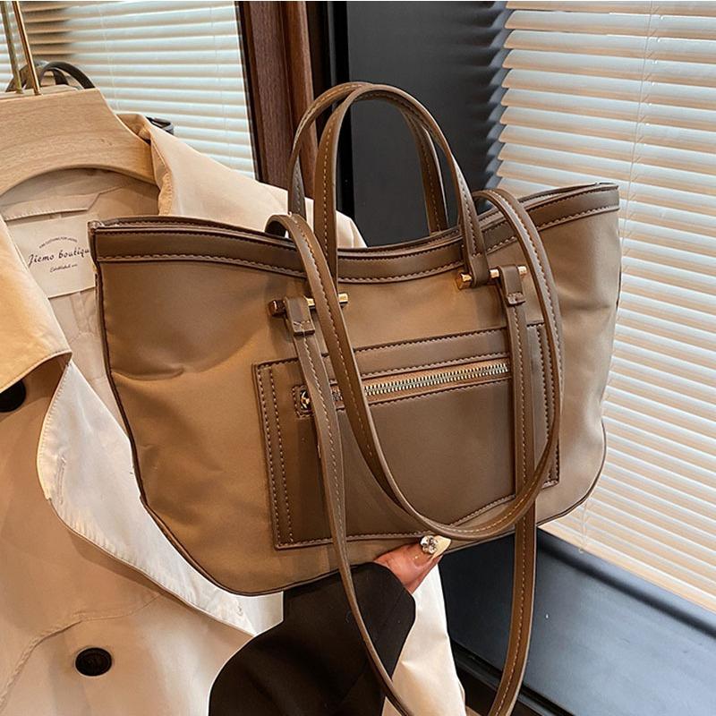 - **Детали структурированной сумки-трансформера**: Имеет стильный силуэт сумки, выполнен из ПУ и нейлона, с текстурированной отделкой, двойные верхние ручки, декоративный плечевой ремень с узором и передний карман на молнии.. Он источает минималистичное и практичное очарование. Четыре классических варианта цвета удовлетворяют разнообразным стилистическим предпочтениям.
