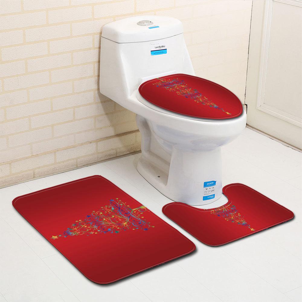 Рождественский коврик для ванной, туалетный трехпредметный набор