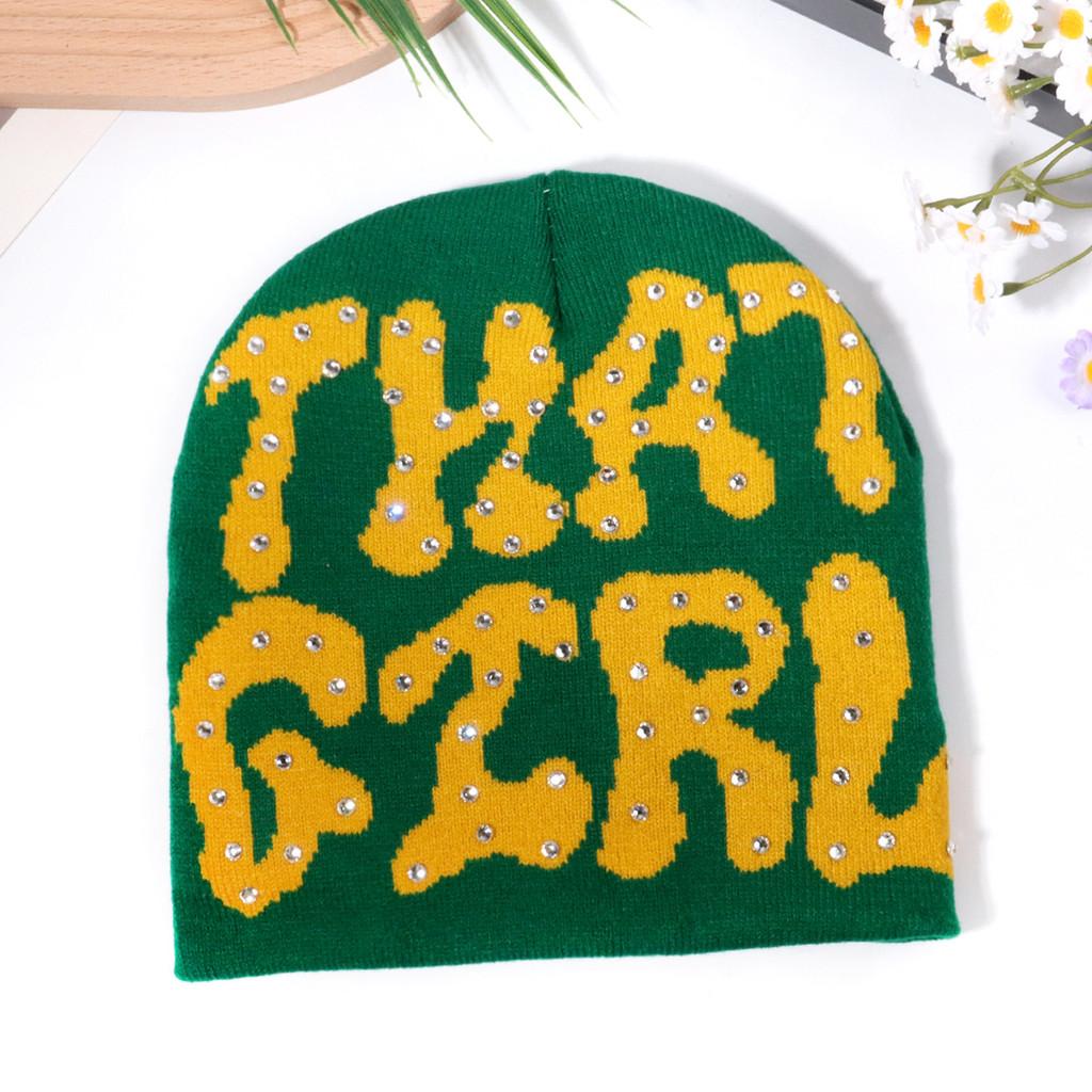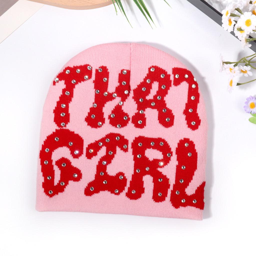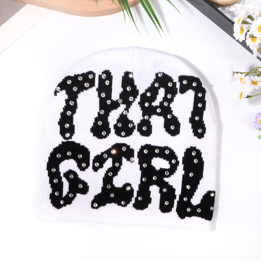 Узор Письмо Мода Стразы Украшение Женская Повседневная Теплая Шапка Вязаная