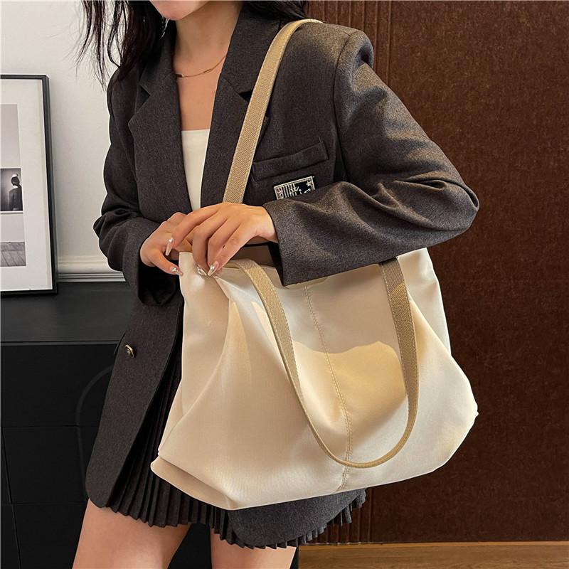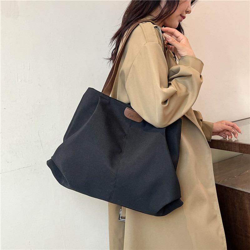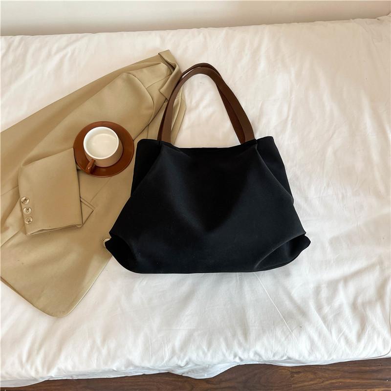 Простая сумка-тоут большой вместимости, студенческая холщовая сумка для занятий, сумка через плечо, универсальная повседневная однотонная сумка для работы, женская