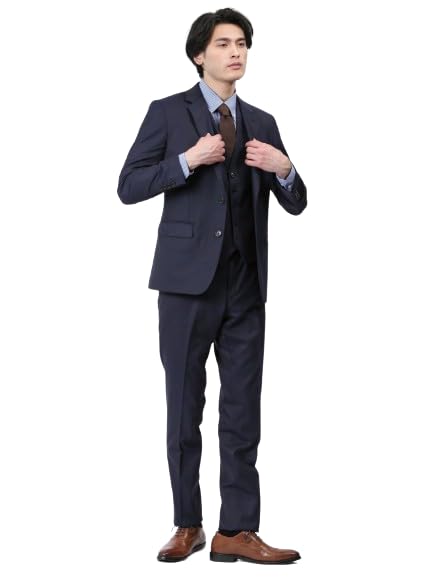 Takakyu Navy Shadow Stripe Suit and Pants Shiny Wool Slim 110011803130433750014 Men's Set, Blend, Fit, 2-Button, 3-Piece Suit,