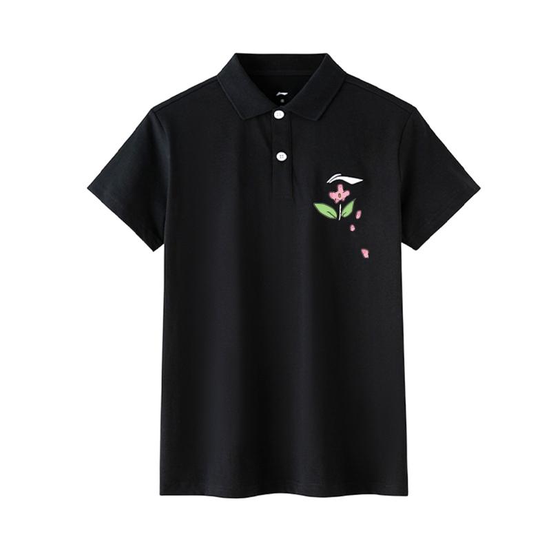 LiNing Настраиваемая футболка-поло с цветочным принтом и принтом кошки, уличная, удобная, для активного отдыха, со спущенным плечом, свободного кроя, с коротким рукавом APLT137-1(TEAM702-A22)