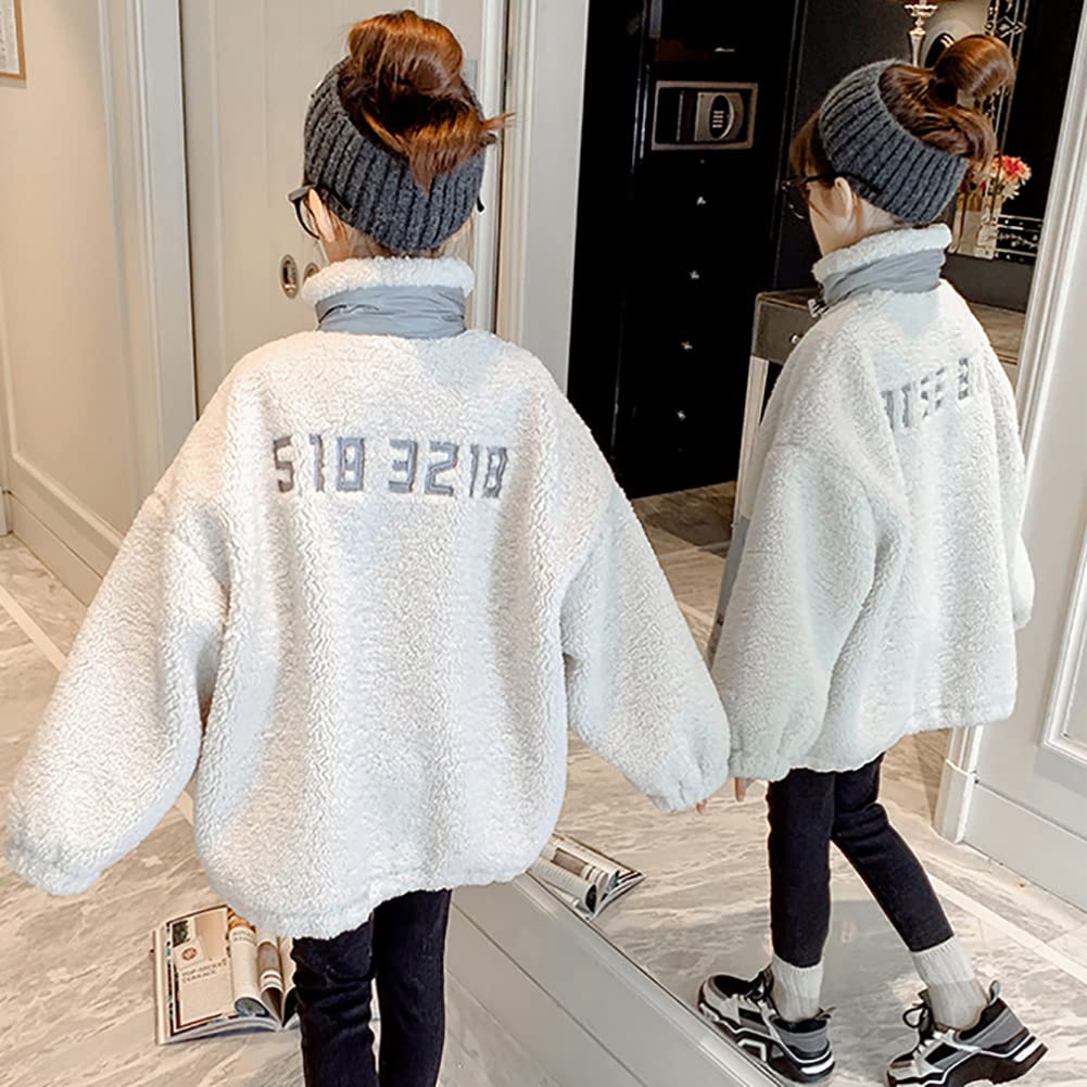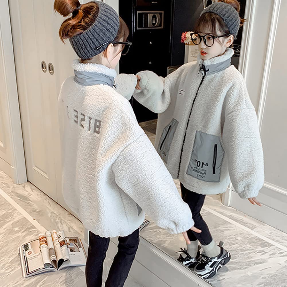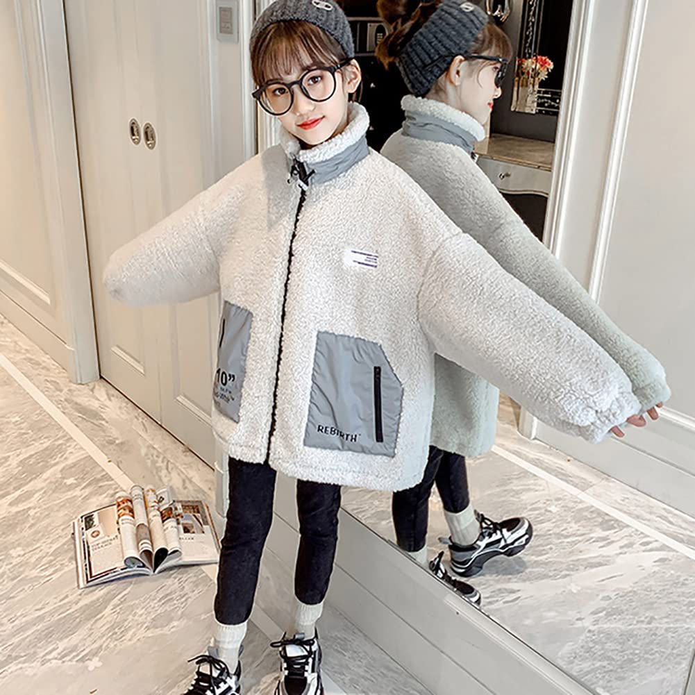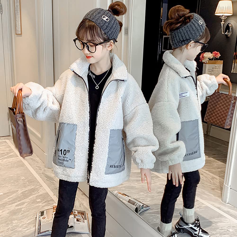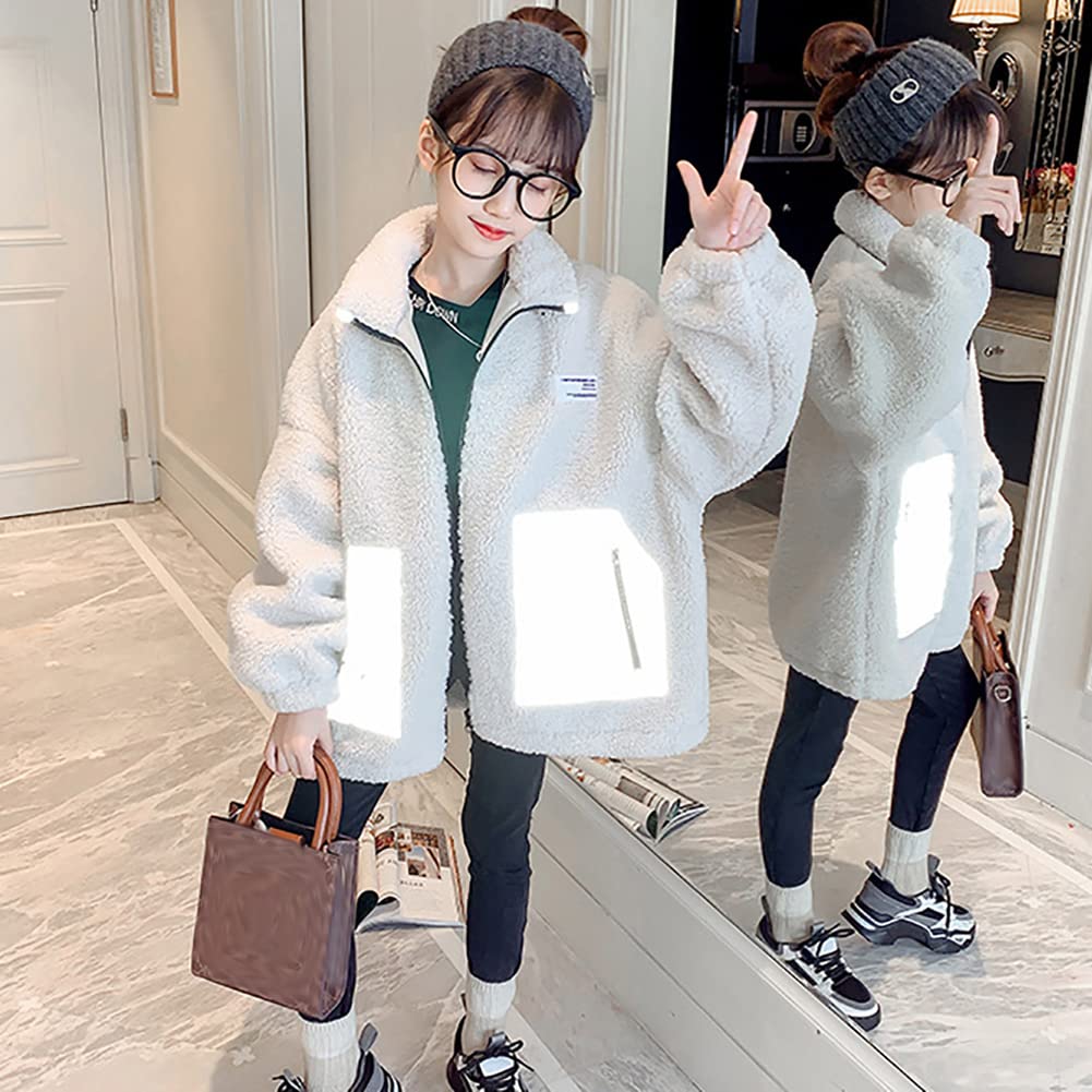 NOMSOCR Флисовая верхняя одежда для пушистых и зимних размеров Размер Детское пальто, Куртка, Для девочек, Теплая, Куртка, 120см-170см (Бежевый, 160см)