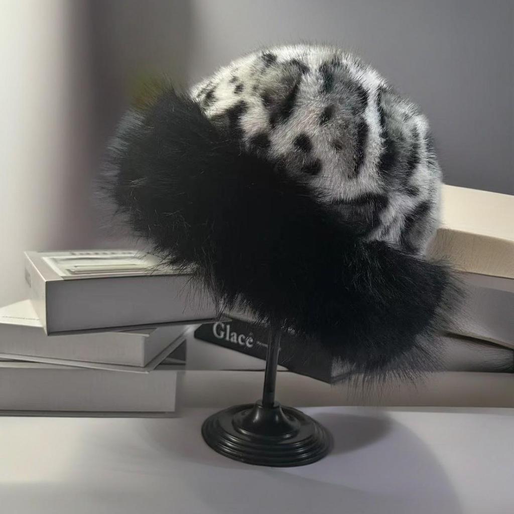 Женская ретро монгольская шапка с леопардовым принтом 2025 - Зимняя теплая шапка с толстой подкладкой и защитой ушей, модная универсальная плюшевая шапка