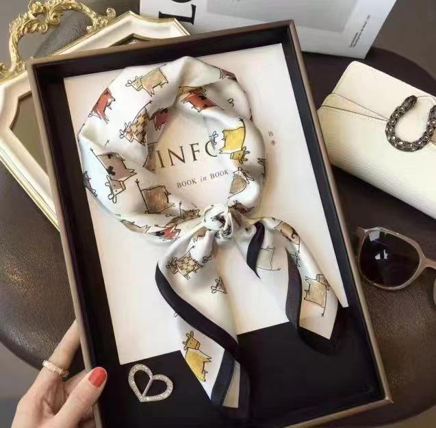 Ретро корейский шелковый снуд в горошек: Универсальный женский декоративный шарф для весны и осени, 70×70 см.