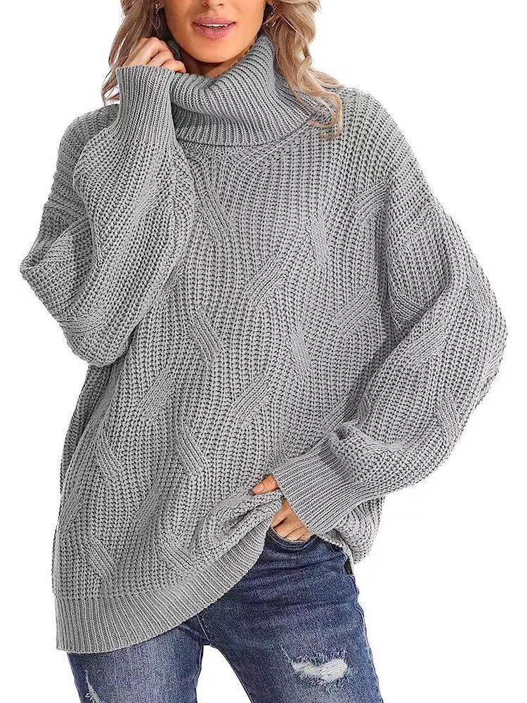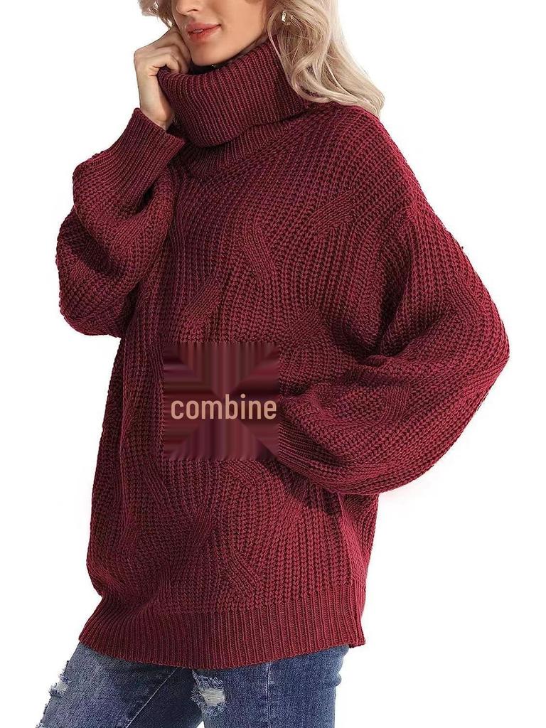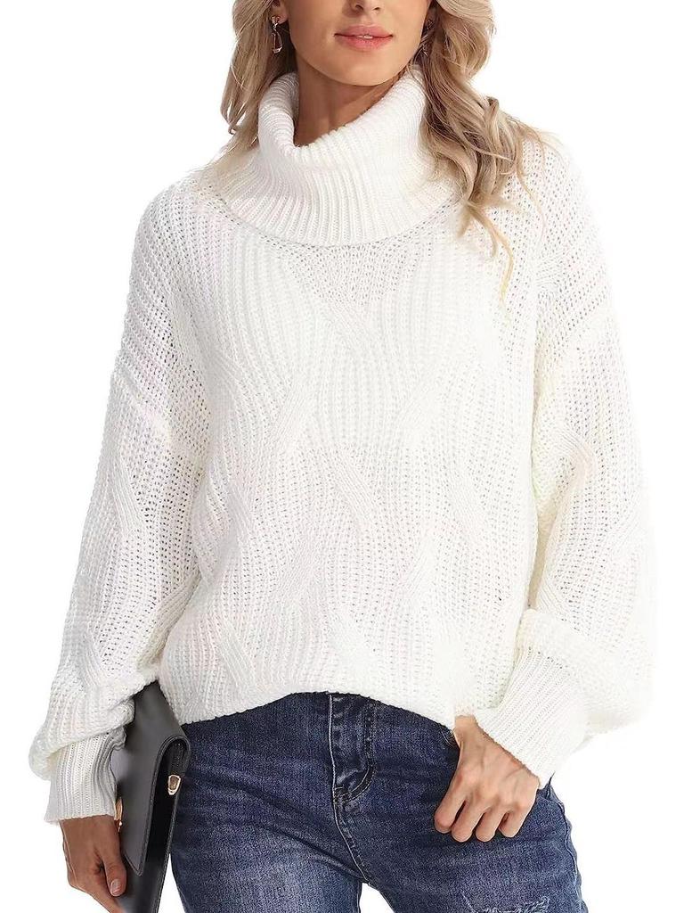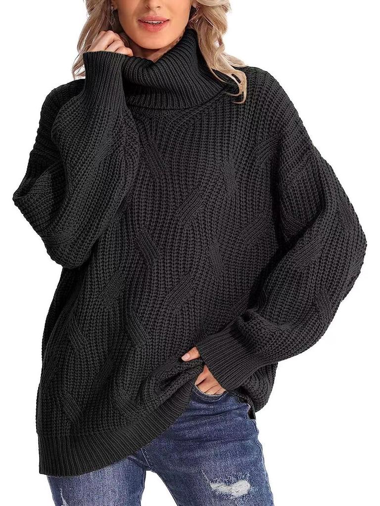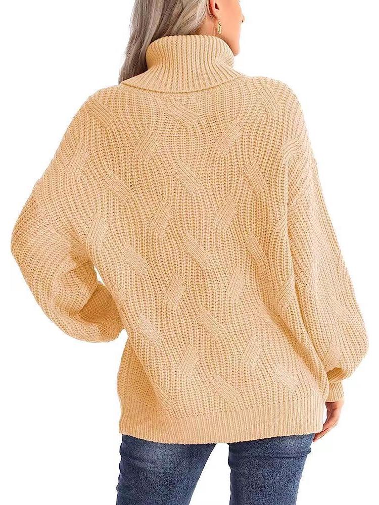 Женский свободный свитер-пуловер с высоким воротником и кабельной вязкой, Осень/Зима 2024