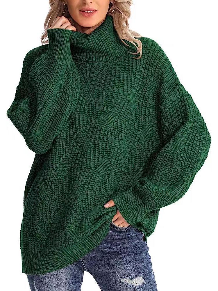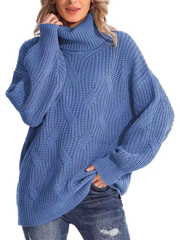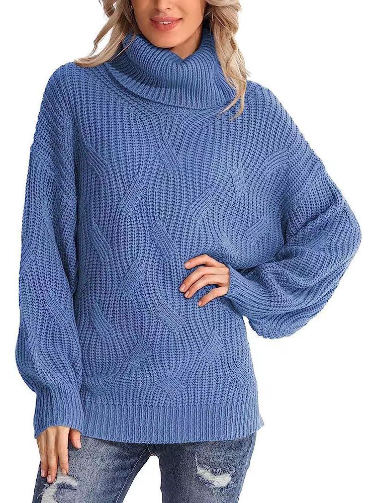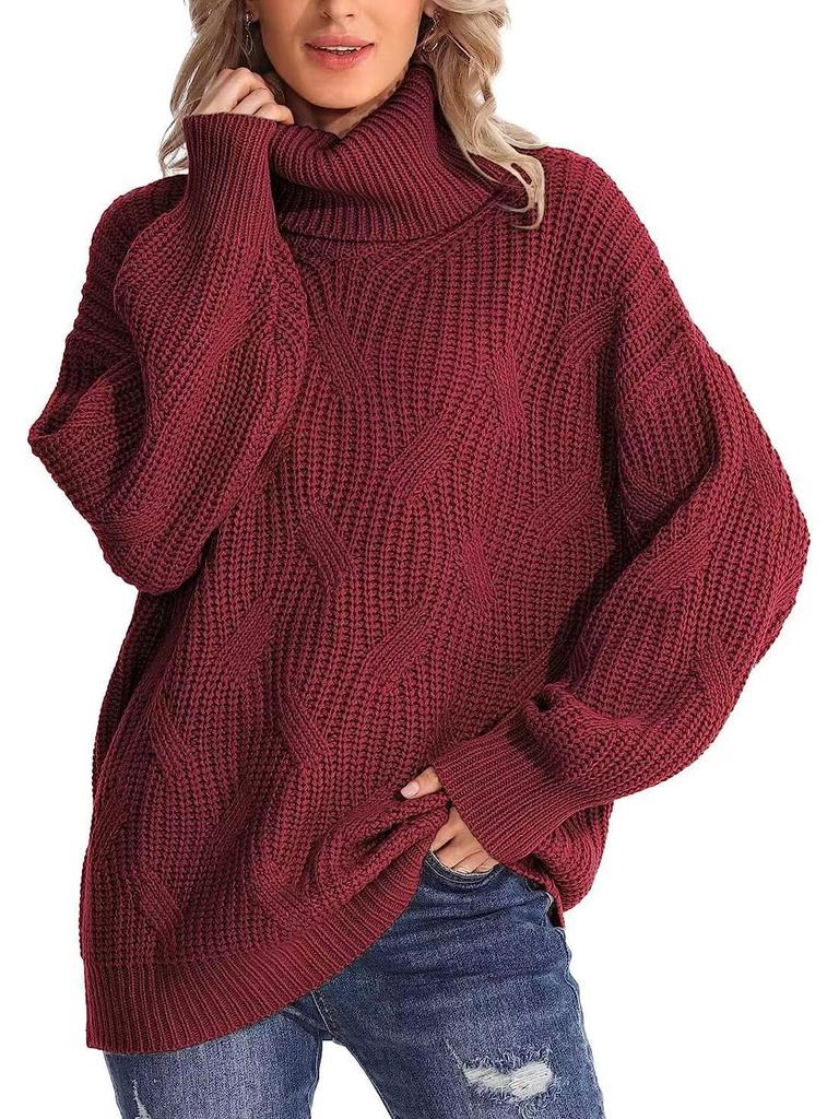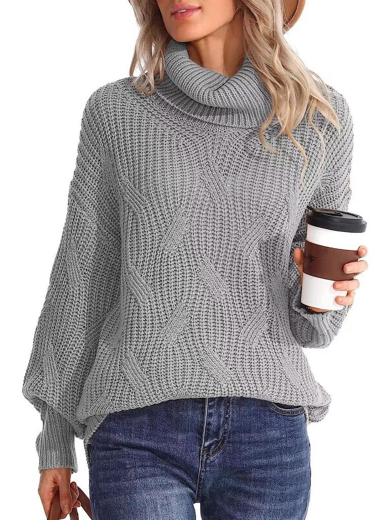 Женский свободный свитер-пуловер с высоким воротником и кабельной вязкой, Осень/Зима 2024