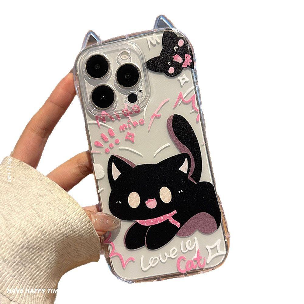 Кошачьи ушки Подходят для чехла для мобильного телефона Apple 16 Защитный чехол для iPhone 15 14pro Браслет 13 Прозрачный 12 Мягкий чехол