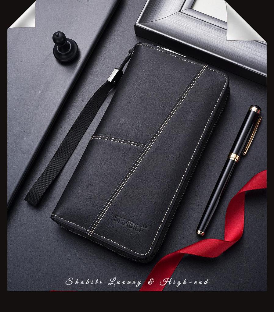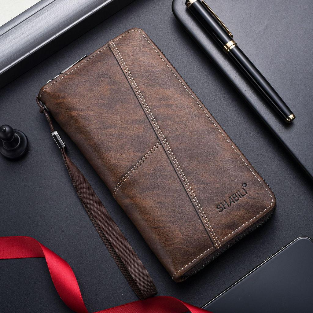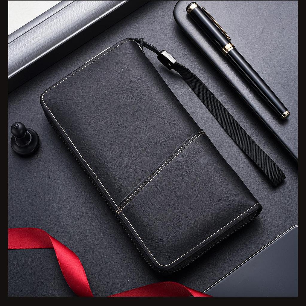 Мужской длинный кожаный кошелек на молнии – Многофункциональный держатель для карт и клатч большой вместимости с множеством отделений для карт