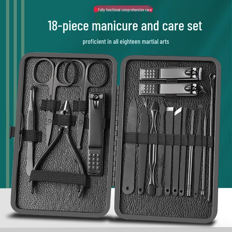 Набор для ухода за ногтями из 18 предметов из черной нержавеющей стали: Кусачки, инструменты для педикюра, пинцеты и средства для удаления черных точек — купить товар онлайн с бесплатной доставкой по всему миру!