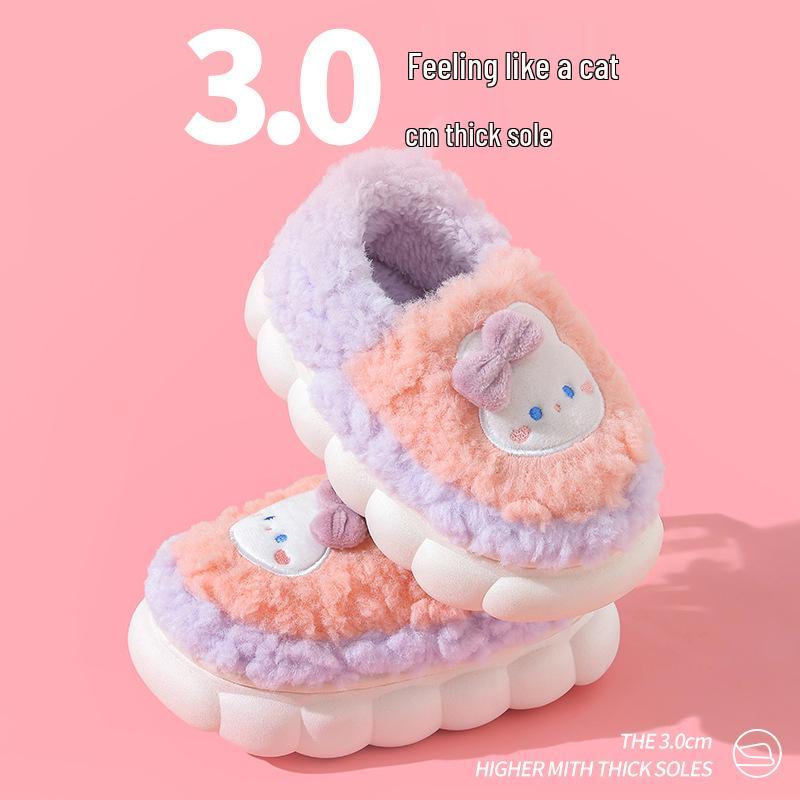 Детские зимние плюшевые тапочки - Теплые, пушистые, на толстой подошве, с мультяшным дизайном для мальчиков, девочек и родителей.