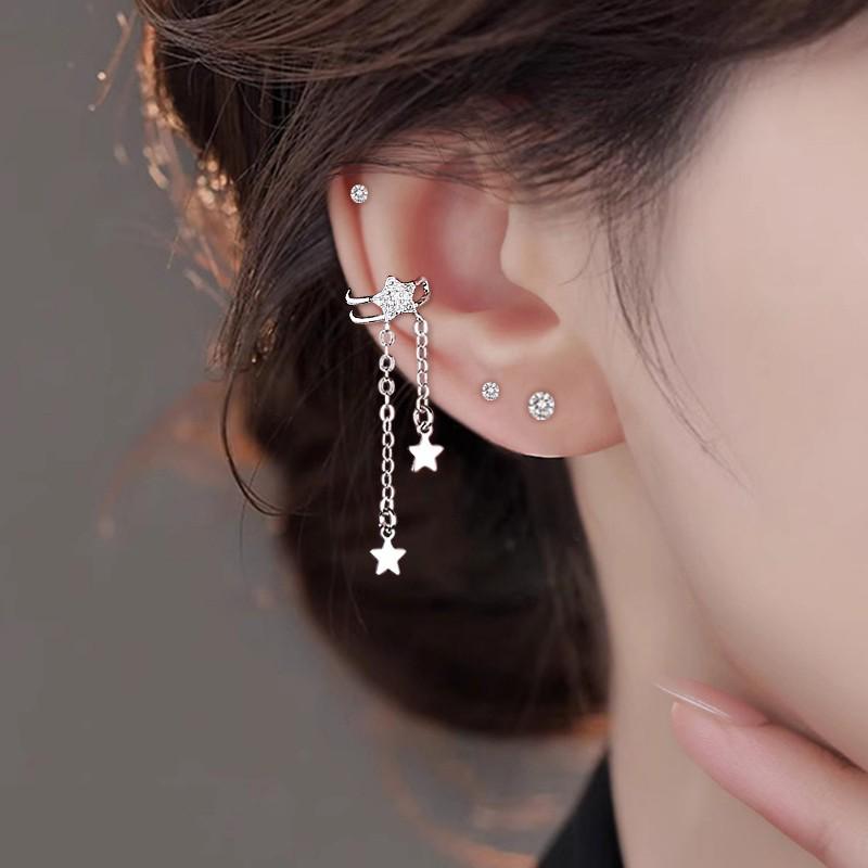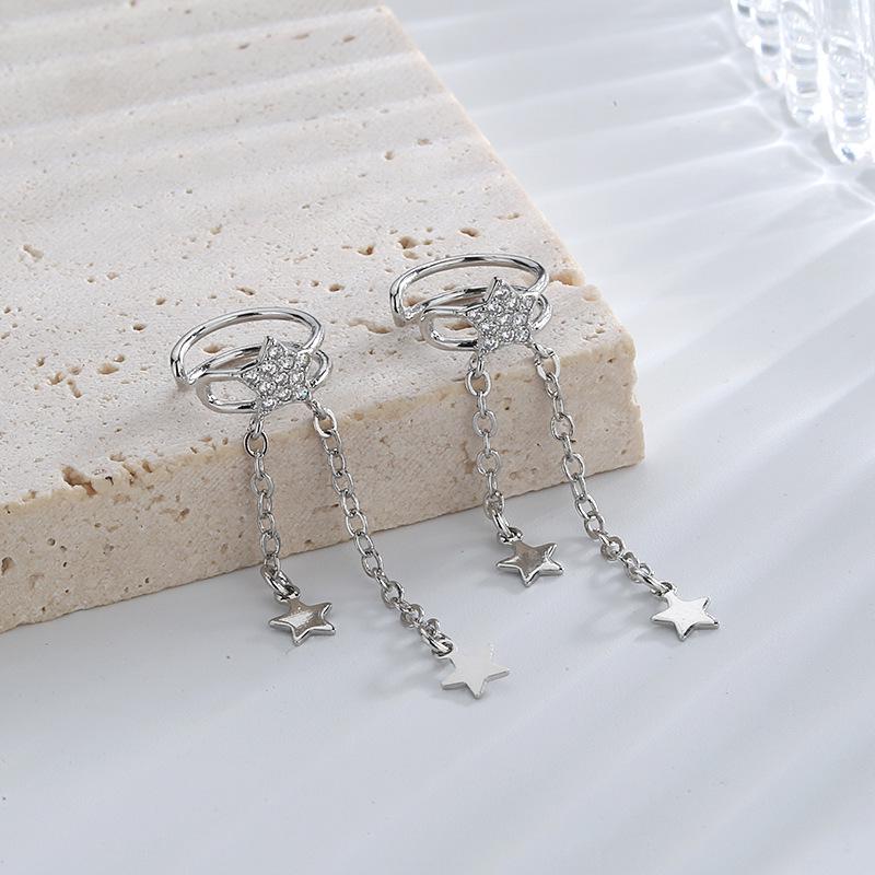 Доброе утро Двухслойный кафф для уха: Стильная серьга-кисточка со звездой без прокола, сверкающая бриллиантами, для женщин