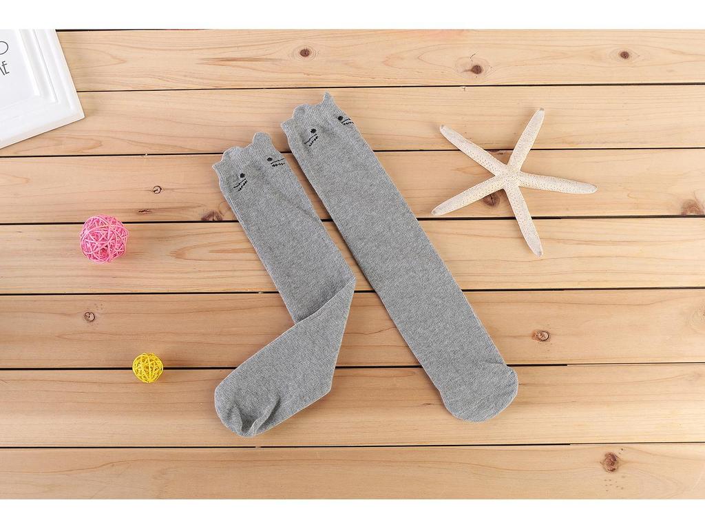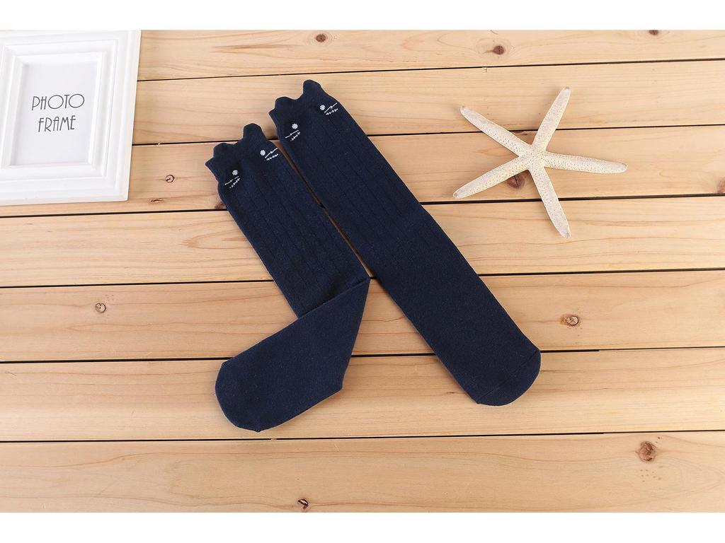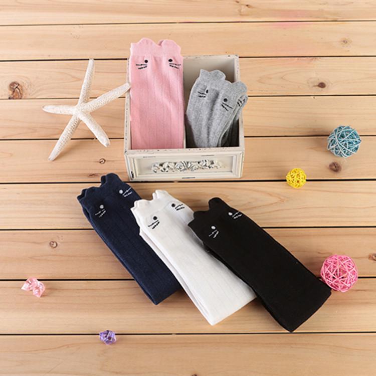 Весенне-осенние 3D хлопковые полосатые гольфы до середины и выше колена для девочек с котиками