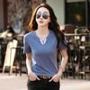 Женская летняя футболка с V-образным вырезом, свободного кроя - Топ в корейском стиле, большого размера, однотонный — купить товар онлайн с бесплатной доставкой по всему миру!