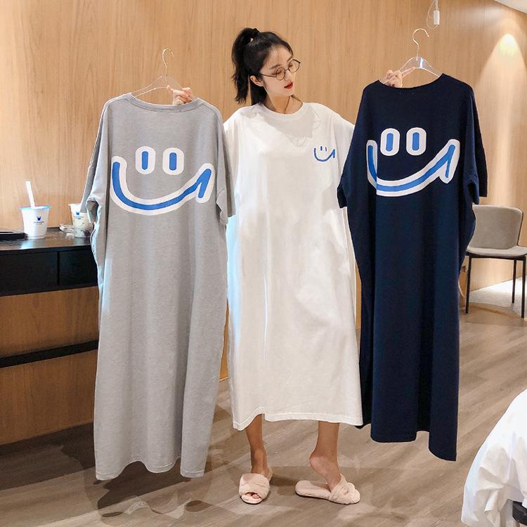 Женская летняя ночная сорочка со смайликом - Свободный крой, Большой размер, Короткий рукав, Длина до колена, Идеально подходит для беременных женщин — купить товар онлайн с бесплатной доставкой по всему миру!