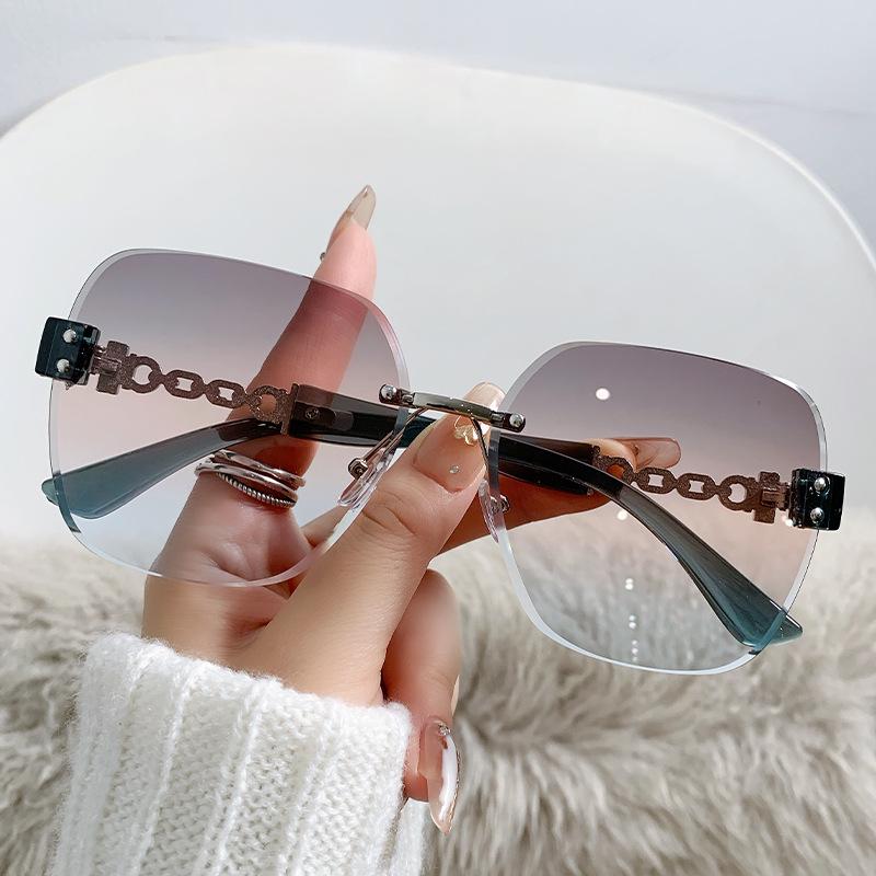 Ретро Безободковые Солнцезащитные Очки с Дужками-Цепочками - Большая Оправа, Высокая Ценность, Защита от УФ-лучей