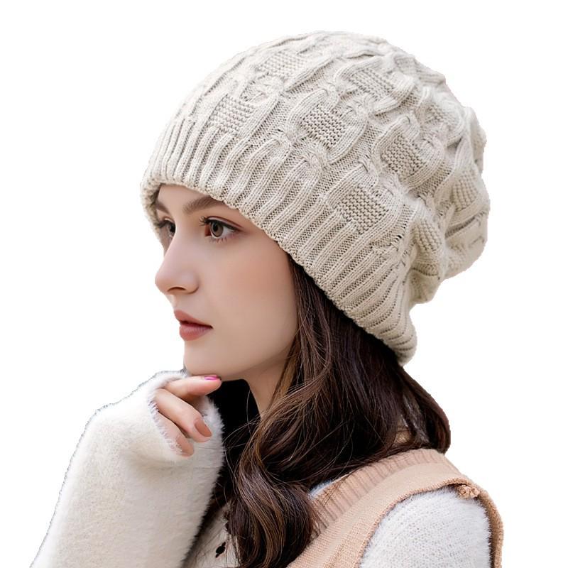 Женская модная зимняя вязаная шапка-бини с защитой ушей, большой окружности головы, с дизайном, визуально стройнящим лицо