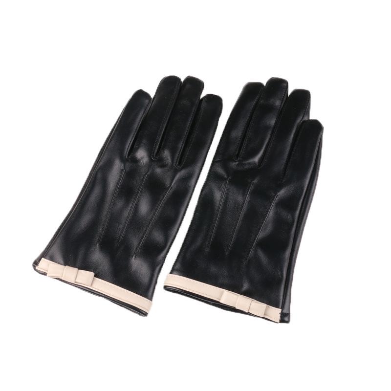 Новые осенне-зимние женские кожаные перчатки теплые и бархатные для защиты от холода, уличная мода, с бантом, кожаные перчатки с поддержкой холодной сенсорной технологии