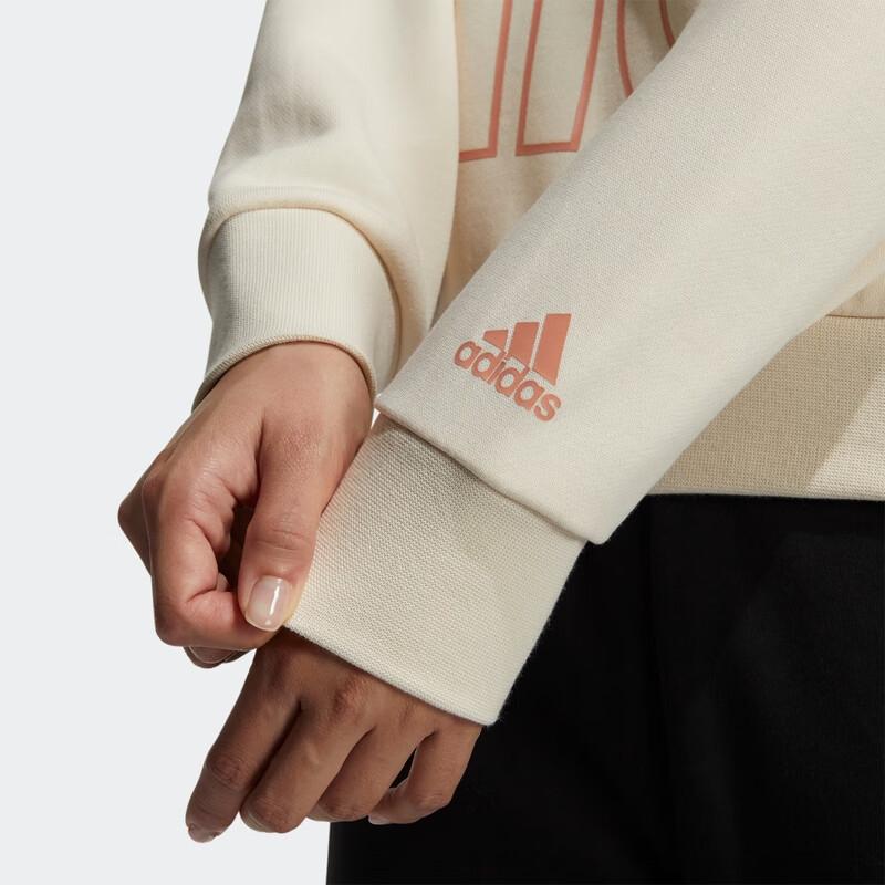 Adidas Свитшот женский спортивный повседневный пуловер с большим логотипом, с круглым вырезом, цвет молочный HM9381
