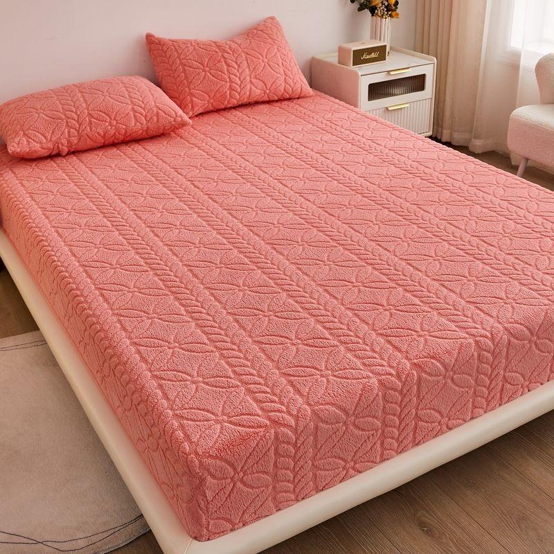 Однотонный Цветочный Узор Плюшевый Набор Покрывал Полное Защитное Покрытие Матраса