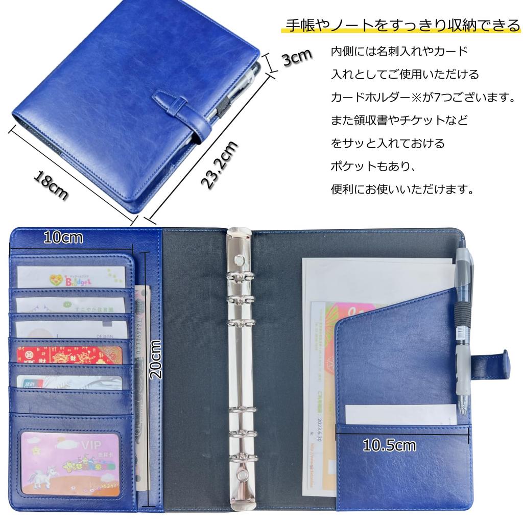 📖 [Alloy Binder] This A5 6-ring system planner uses a ring binder with an inner diameter of approximately 25mm, and holds 45 ruled sheets, 10 grid sheets, 10 plain sheets, 10 dotted sheets, 15 schedule sheets, and two document storage files. The inner liner allows you to easily organize your writing, allowing you to easily change the contents. The belt closure makes it stylish and easy to use.