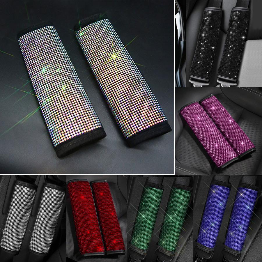 2 Pack Crystal Rhinestone Car Seat Belt Cover Auto Should Padding Protector Diamond Car Interior Accessories For Women Girls — купить товар онлайн с бесплатной доставкой по всему миру!