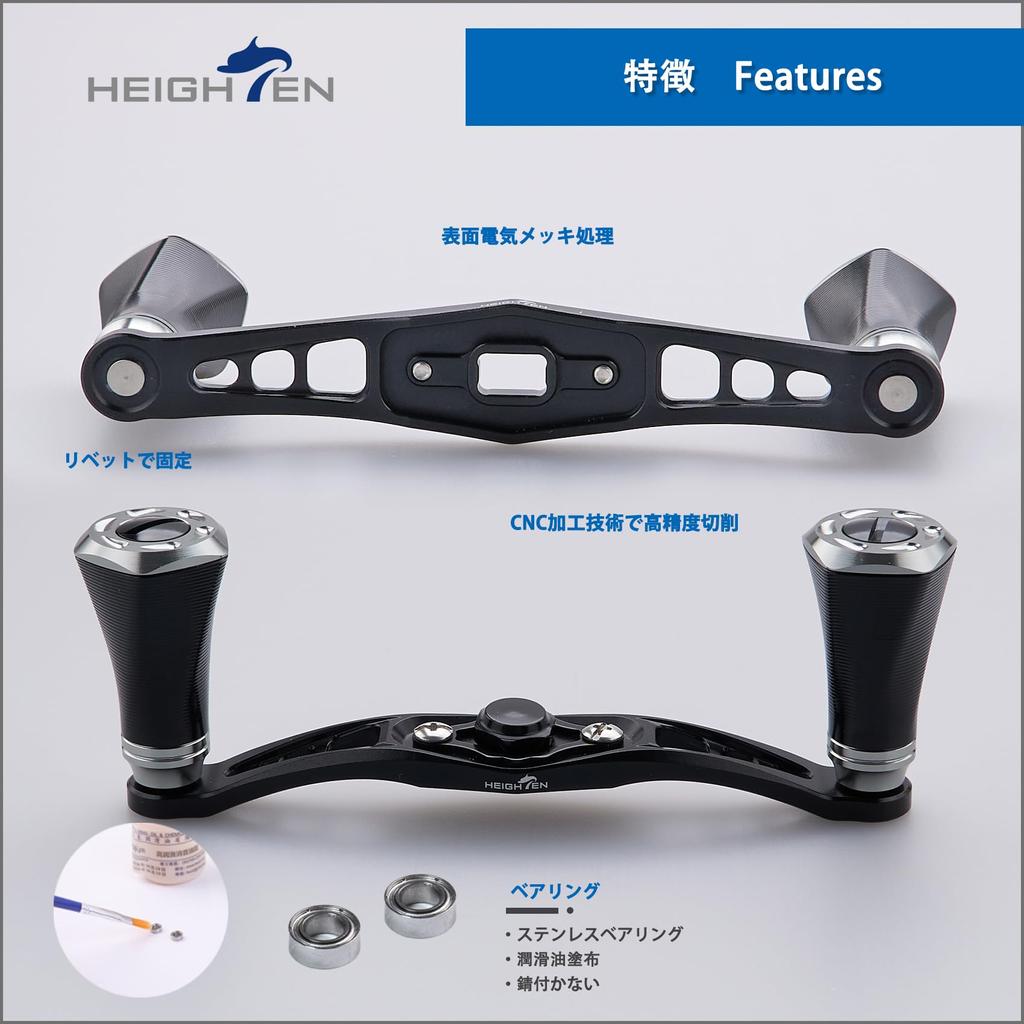 HEIGHTEN 92mm Reel Handle with 20mm Knob, Compatible with Shimano, Daiwa, and Abu Tornado Series Baitcasting Reels (Black & Gunmetal) (689)