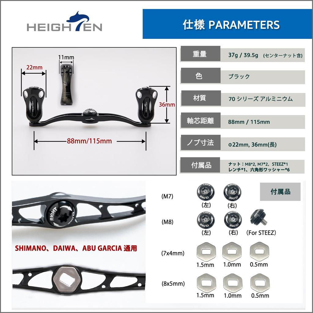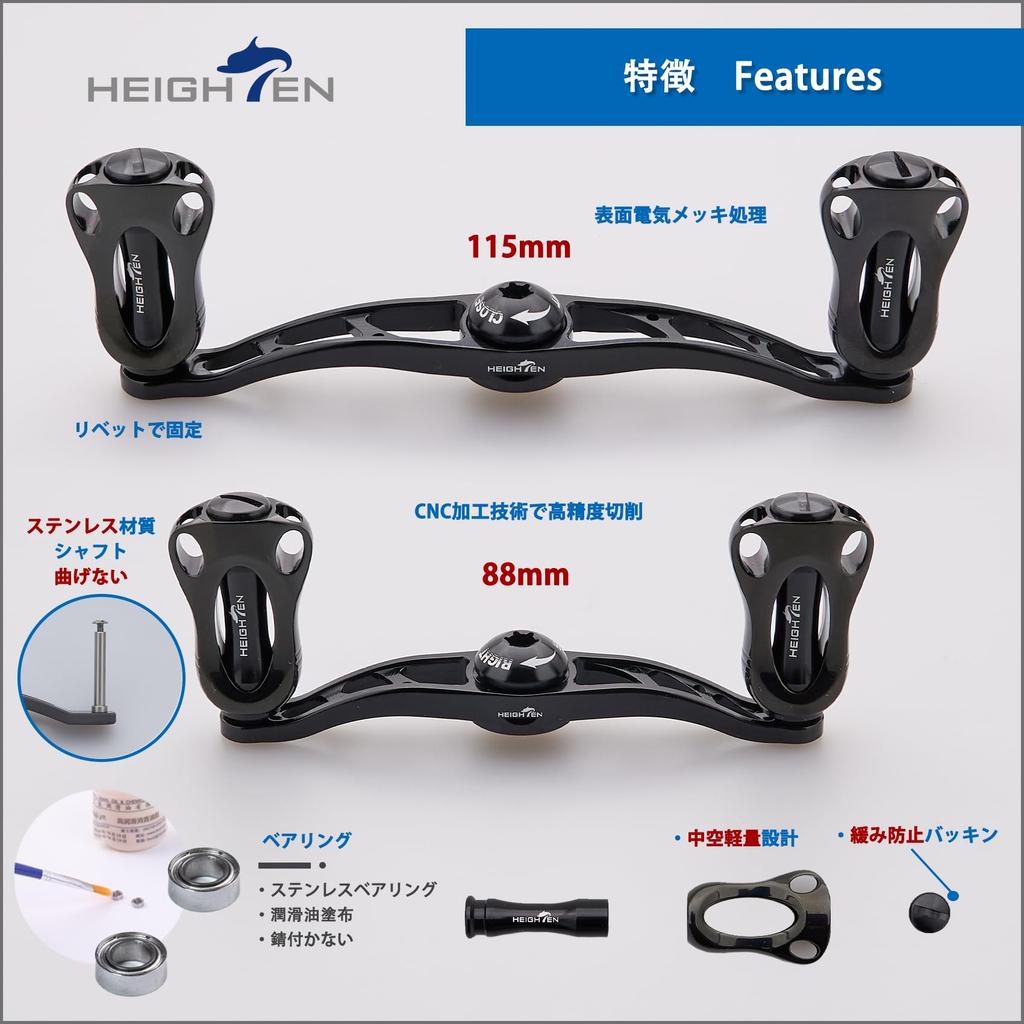 HEIGHTEN 115/88mm Reel Handle with 22mm Knob, Compatible with Shimano, Daiwa, and Abu Baitcasting Reels, Fan Series (Black, 115mm) (862)