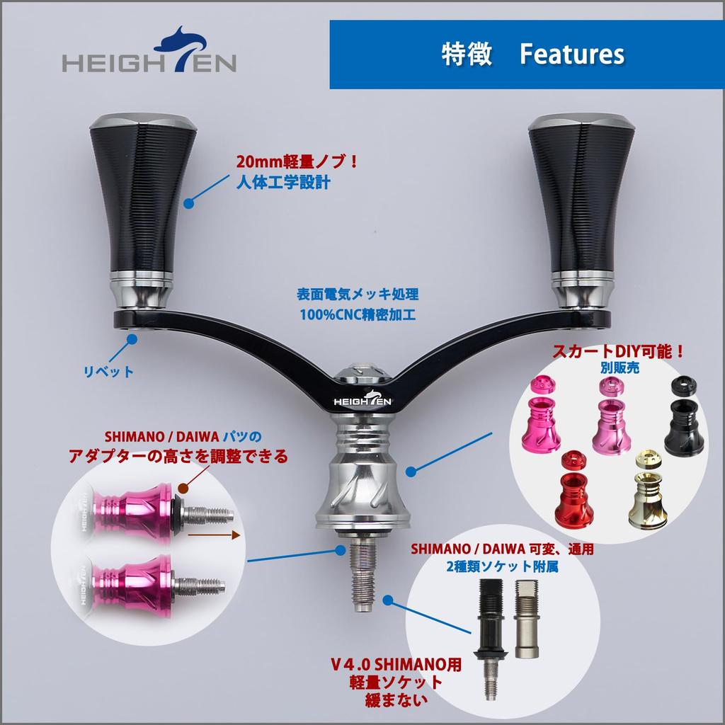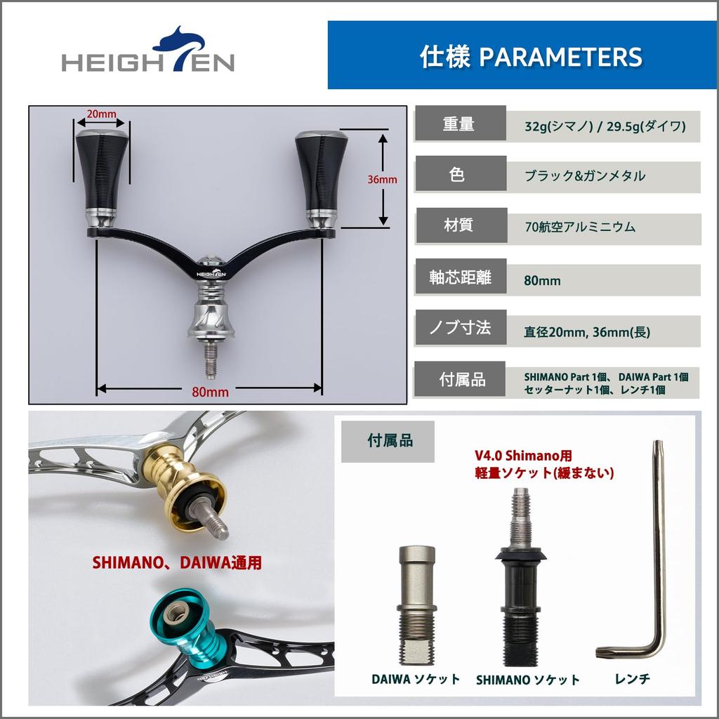 HEIGHTEN 80mm Reel Handle with 20mm Knob, Compatible with Shimano and Daiwa Tornado Series Spinning Reels (Black & Gunmetal) (702)
