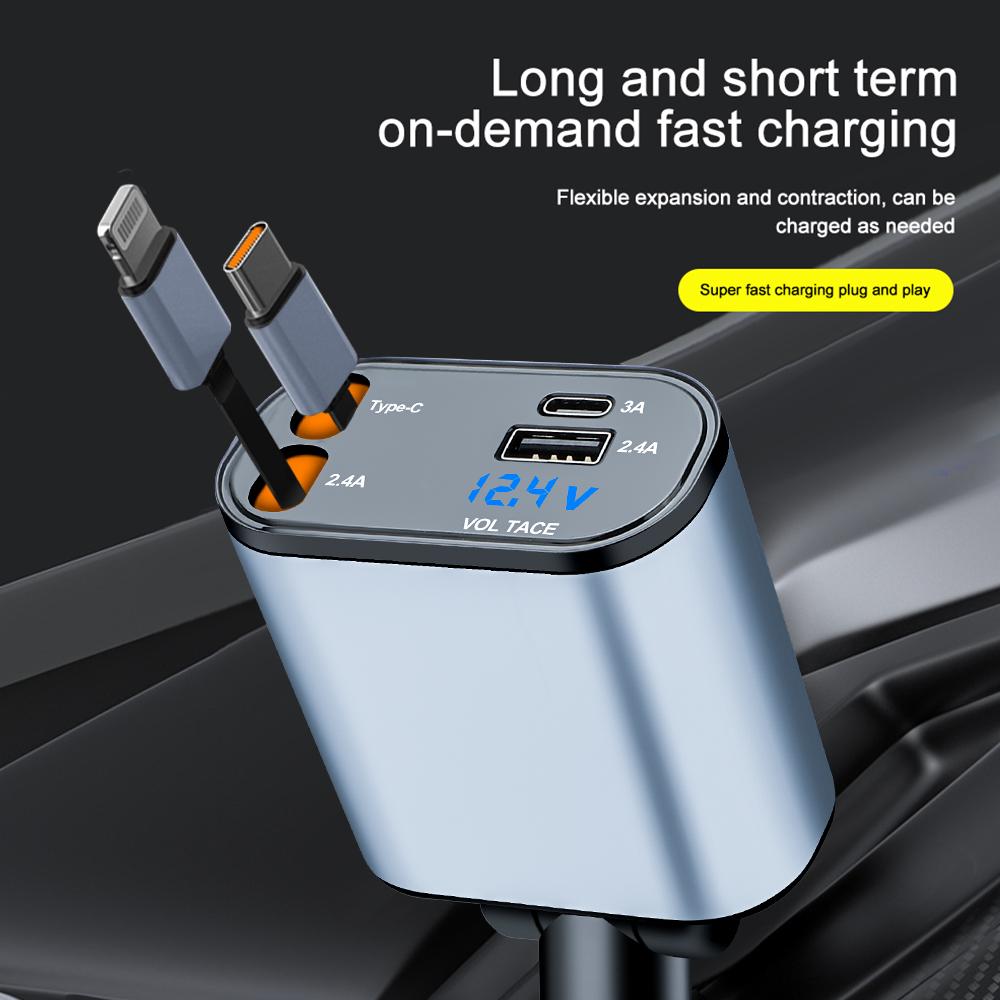 120W Retractable Car Charger 120W Fast Charger 4-in-1 Fast Charging Car Phone Charger For IPhone Samsung Huawei