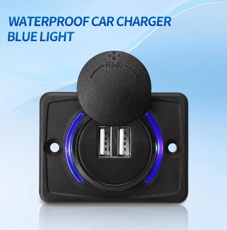 Двойное USB гнездо для автомобильного зарядного устройства с быстрой зарядкой, с выдвижной крышкой и светодиодной подсветкой, 12 В/24 В, розетка питания для автомобиля, лодки, автобуса, дома на колесах