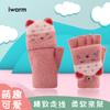 Детские зимние варежки без пальцев с откидным верхом, мультяшные вязаные теплые и бархатные, с открытыми пальцами, милые перчатки для мальчиков и девочек от холода