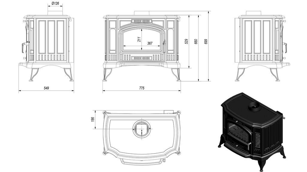 Чугунная печь на дровах KRATKI K9 с автоматическим управлением воздухом Ø 130 10 кВт