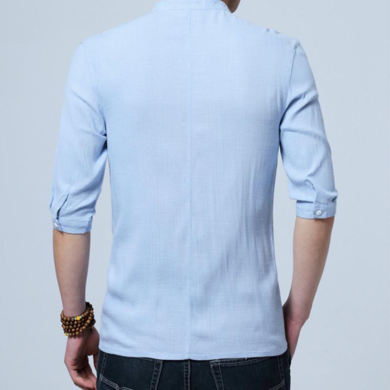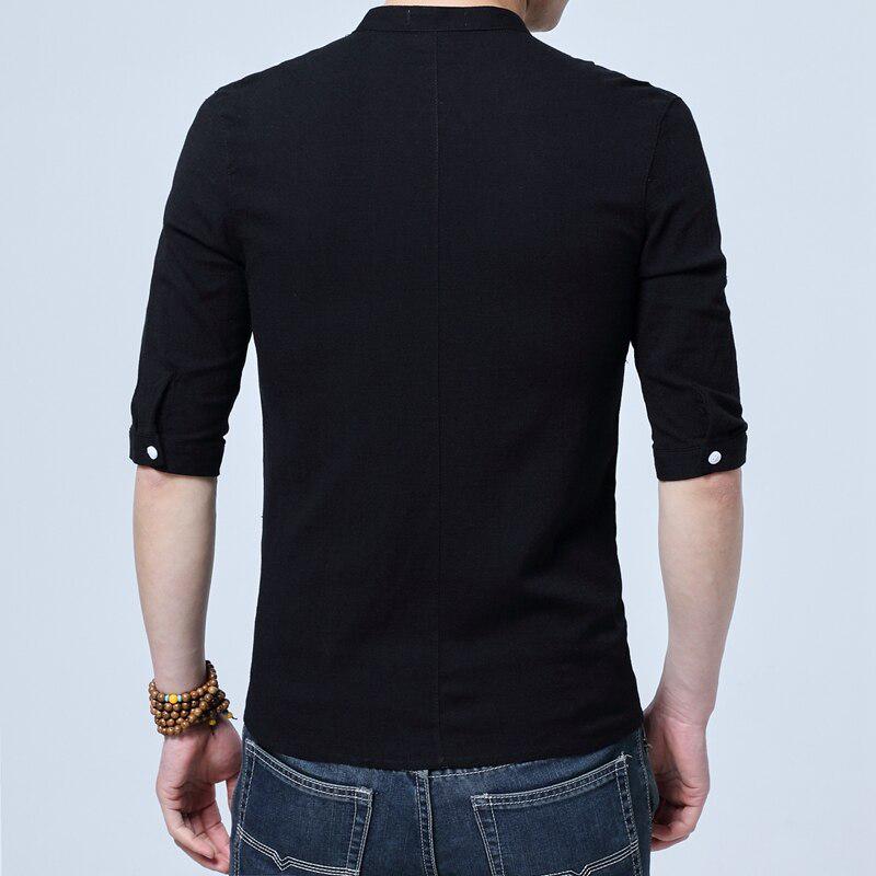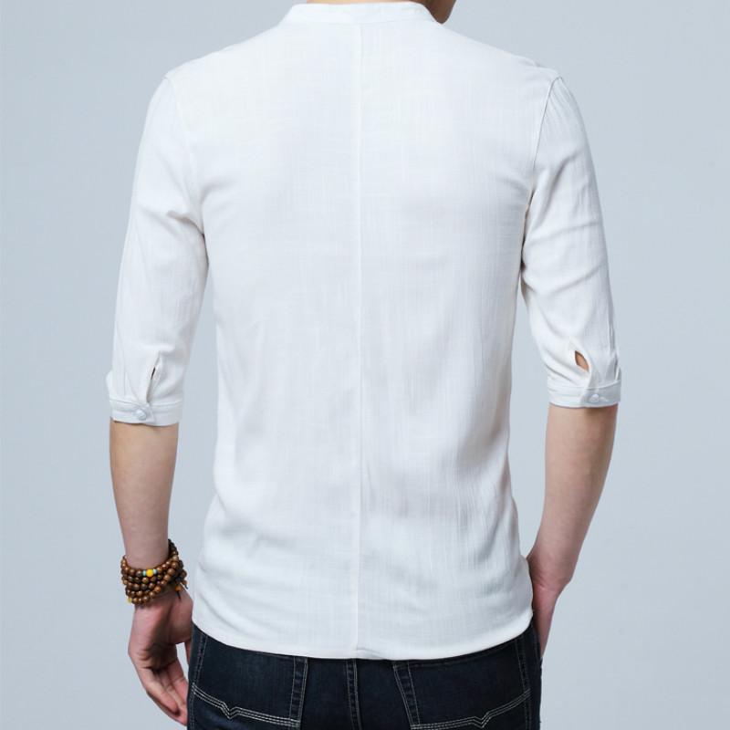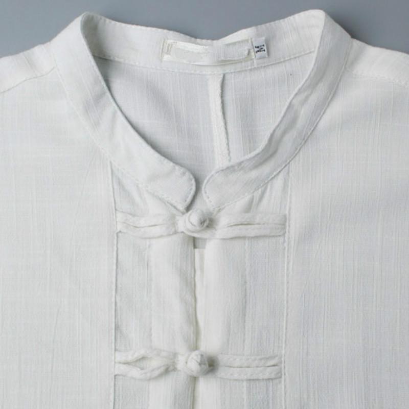 Мужские хлопковые льняные рубашки, мужская тонкая рубашка с воротником-стойкой с короткими рукавами в китайском стиле Camisa Masculina