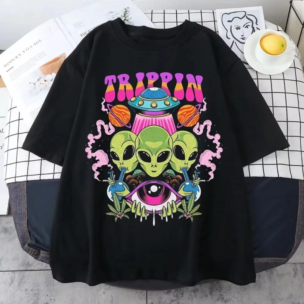 Харадзюку Готика Женская Футболка Креативный Принт Инопланетянина Топы Женская Летняя Мода Повседневные Топы Женская Одежда Футболка Ropa Mujer