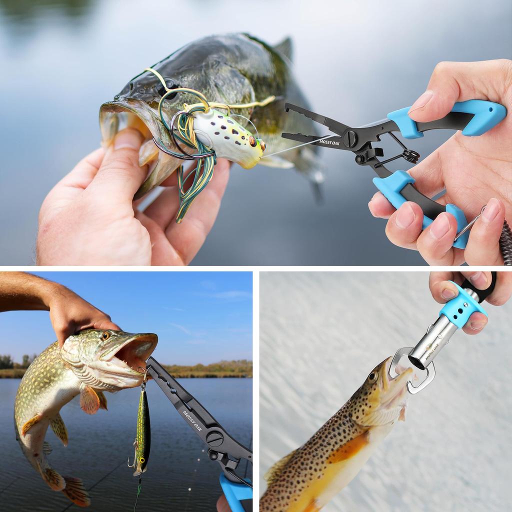 Mossy Oak Fishing Pliers and Fish Fish Fish Fishing Fish Fish Fishing Tool Stainless for Freshwater and Saltwater Includes Strap and Storage Bag