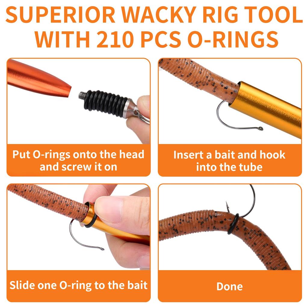 TRUSCEND Gradient Fishing Wacky Rigs with Silicone for and Worm Downrigger Tubes for Easy Installation and Stickbait O-Rings (210 Pieces) 3-4" 5-7"