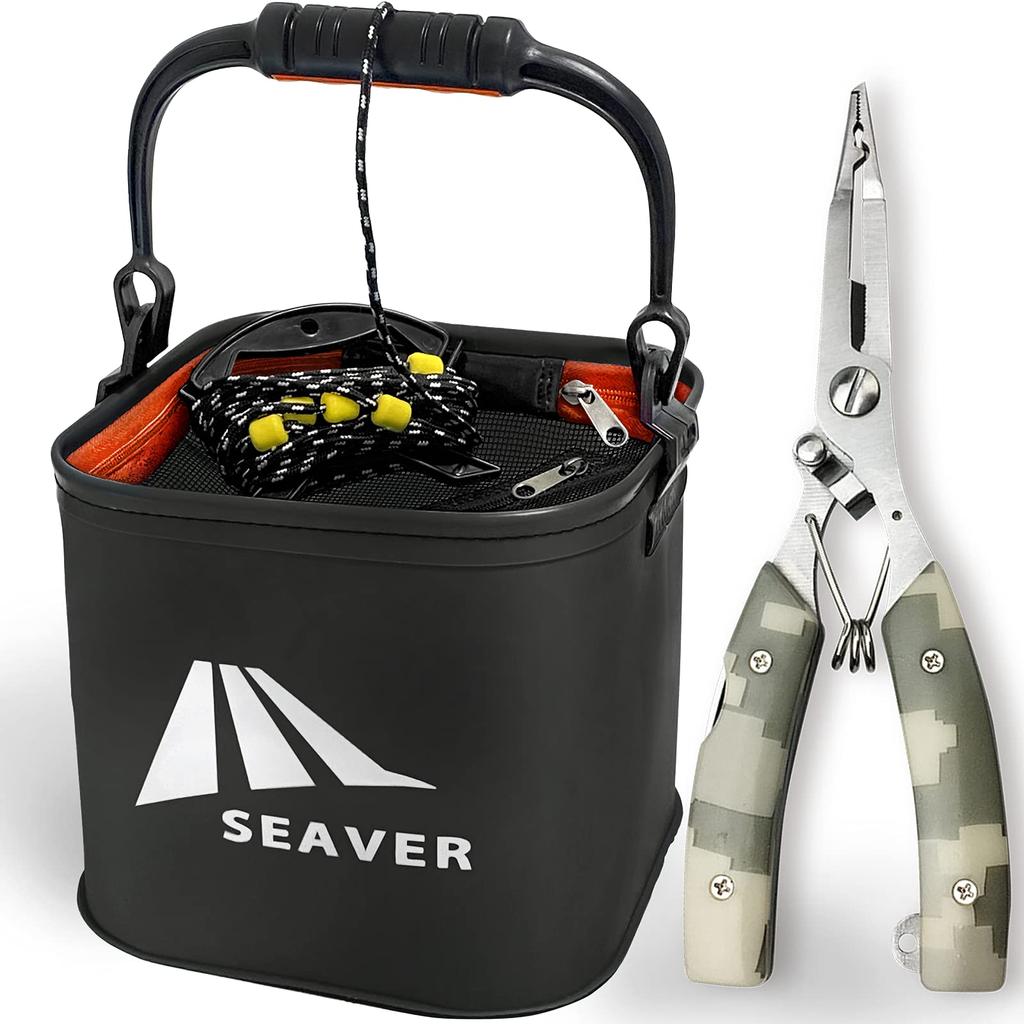 SEAVER Рыболовная Вода 22см Ваш с Плоскогубцами и Захватом для Рыбы Ведро, [Выберите Набор/Цвет] (Черный комплект)