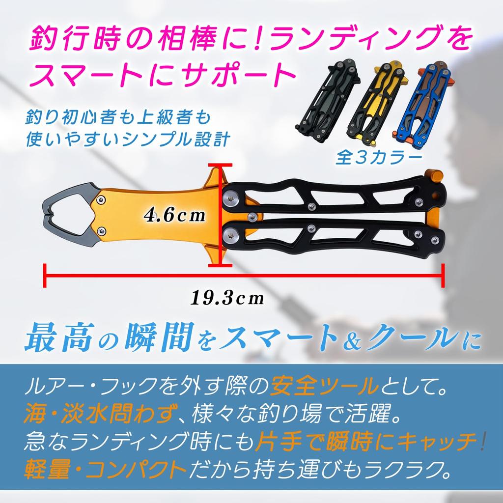 [Умный дизайн с бабочкой] Этот захват для рыбы раскладывается одним нажатием и компактно складывается для удобного хранения в ящике для снастей или рыболовной сумке. [Простое управление одной рукой] Просто нажмите на рычаг, чтобы открыть крючок, что позволит вам плавно ловить рыбу одной рукой. Разработан для удобства использования как правой, так и левой рукой. [Легкий и прочный алюминиевый корпус] Изготовлен из высокопрочного алюминиевого сплава, устойчив к коррозии и чрезвычайно долговечен. При этом он весит всего 75,3 г, что делает его сверхлегкой рукояткой, которая не будет вас утомлять даже во время долгих рыболовных поездок.. [Крутой дизайн, доступен в 3 цветах] Доступен в титановом черном, золотисто-черном и медно-синем. Стильный и элегантный, это продукт, который вам понравится. [Размеры и простые в использовании характеристики] В сложенном виде: Длина 11,5 см x ширина 4,6 см; открыто: Длина 19,3 см x ширина 4,6 см; Вес: 75.3г; Обеспечивает безопасную и плавную посадку без повреждения рыбы.