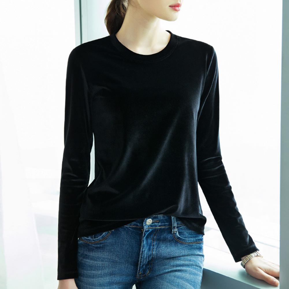 Элегантная бархатная женская блузка, темпераментная футболка с яркой поверхностью, пуловер, весенне-осенняя базовая рубашка, женский пуловер, женский топ — купить товар онлайн с бесплатной доставкой по всему миру!