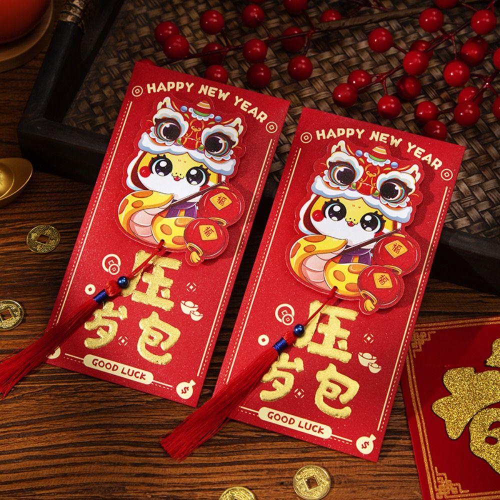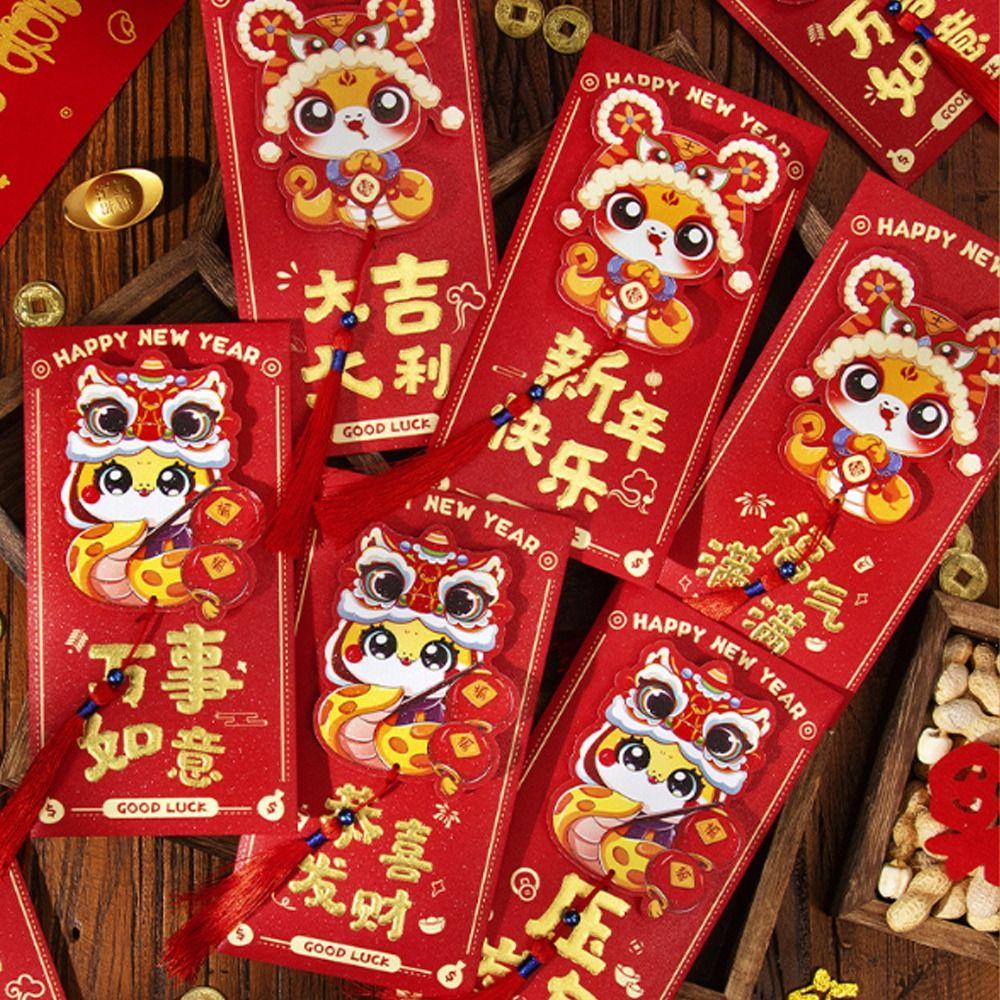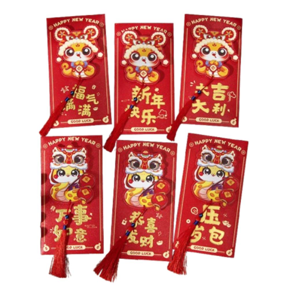 6pcs Chinese Style 3D New Year Money Pocket Traditional Good Luck Red Packet Wedding Birthday