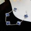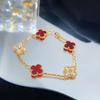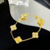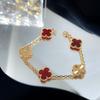 Браслет «Четырехлистный клевер» с пятью цветками, версия High, натуральный фиолетовый халцедон, лазерная CNC-резьба, 18 карат, не тускнеющий, женский браслет