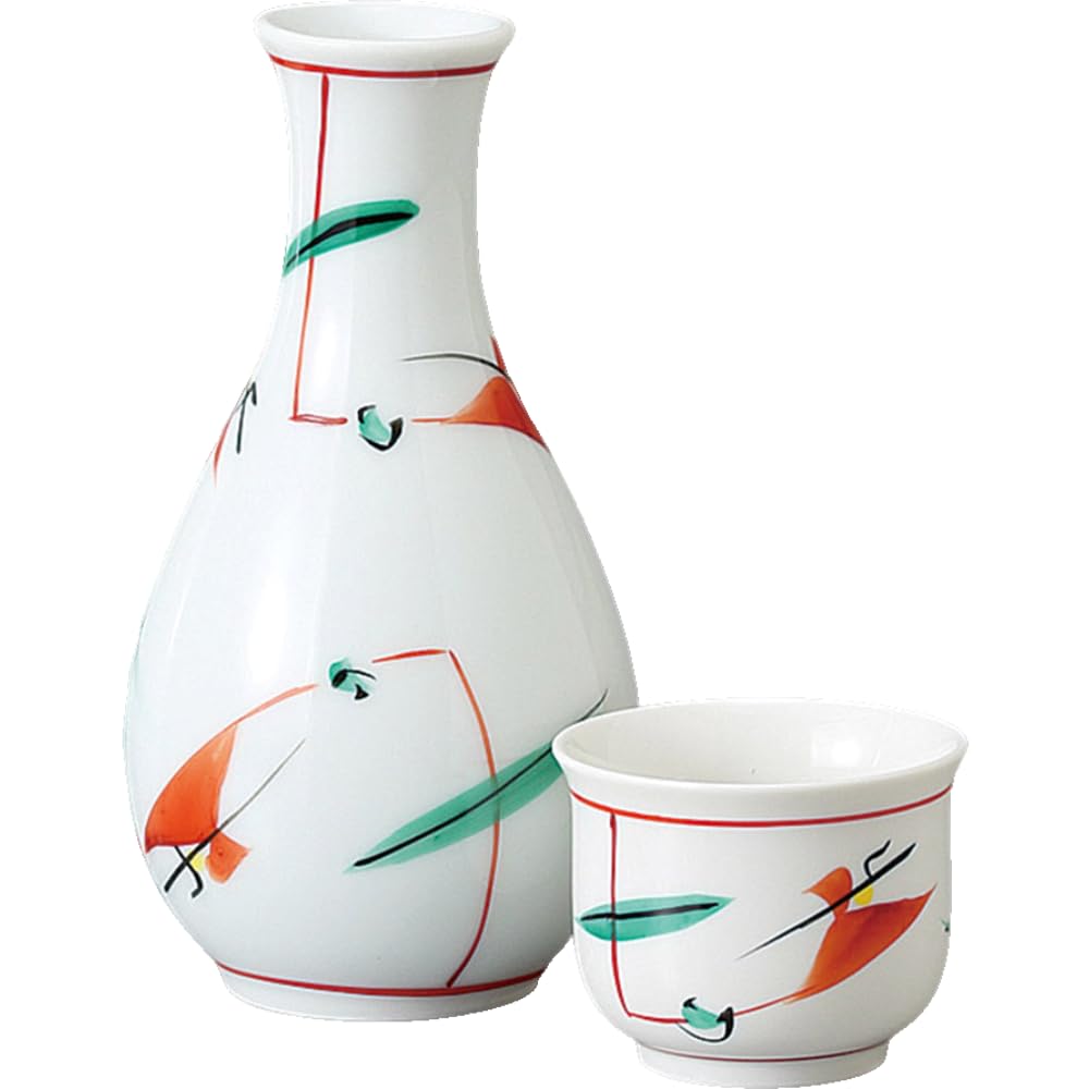Sake Tokkuri and Ochoko 8cm Diameter x Tsuyugusa Large Size Mino Suitable for Hot Cold and Japanese Sake Ale-net Set, Set, 15.2cm High, 280ml,