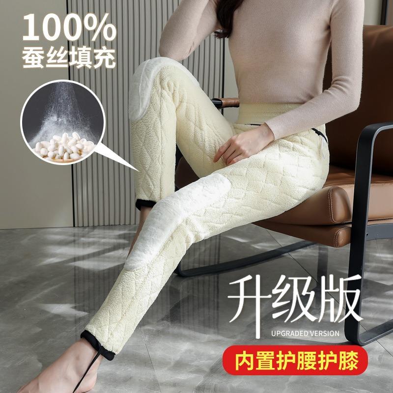 Наколенники из овечьей шерсти, шелковые термоштаны, женская верхняя одежда, флисовые утолщенные леггинсы, высокая посадка, большой размер, очень толстые хлопковые штаны