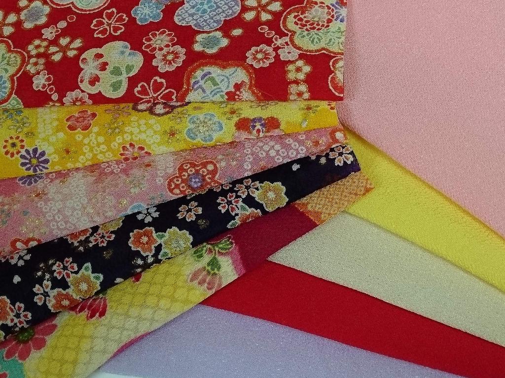 Ichigoe Chirimen for Tsumami Zaiku Set of 5 floral patterns and 5 plain patterns Cut Chirimen