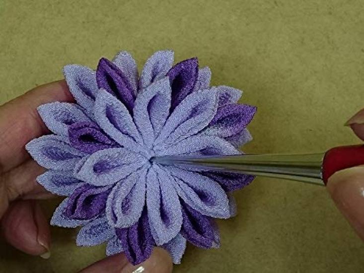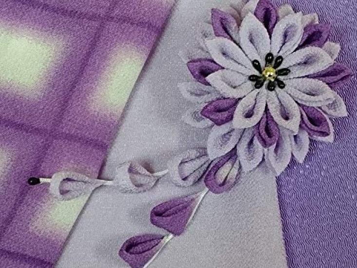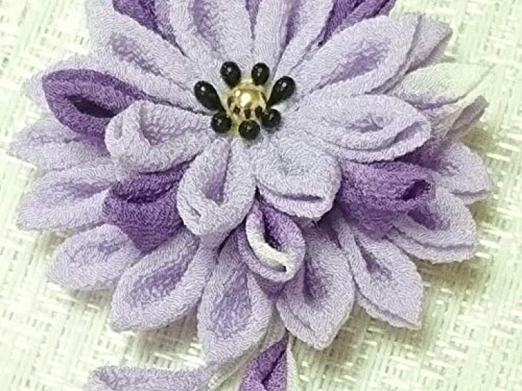 Брошь фиолетовая набор для рукоделия из ткани чиримен Цумами-дзаику "Мино хризантема"